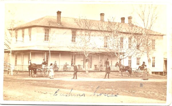 The Afton House Inn was formely know as the The Cushing Hotel andwas a two-story frame structure measuring 24 feet by 80 feet.It was constructed in 1867 on the foundations of the earlier 1856 PatersonHotel which was destroyed by fire in 1861. The foundation of the PatersonHotel survives beneath, The Cushing Hotel and measures 24 feet by 24 feet. Likethe present hotel, the Paterson Hotel was two stories in height and of wood frame construction.