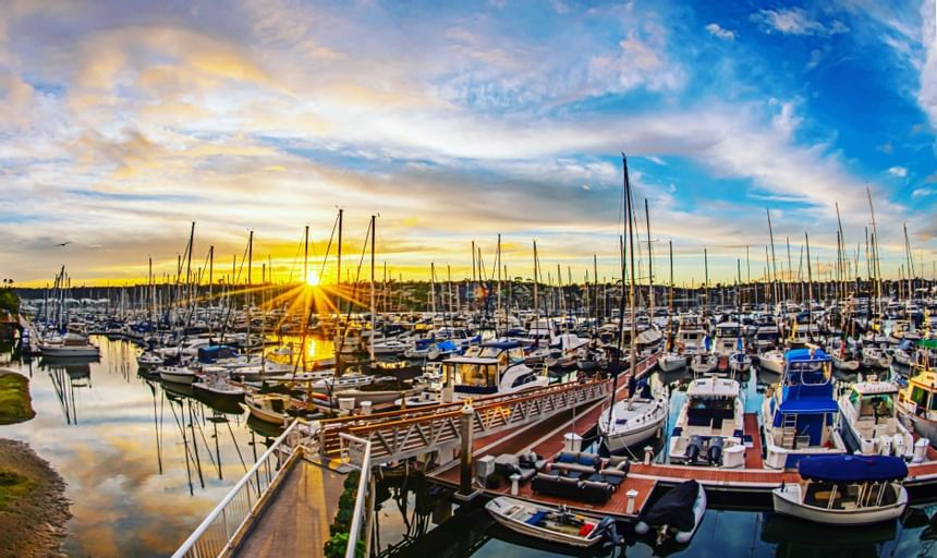 Discover comfortable, spacious accommodations, incredible views and exceptional amenities at the Bay Club Hotel & Marina in the heart of San Diego Bay. We are next to Humphrey’s Outdoor Concert venue and within walking distance of many popular restaurants and marine specialty stores and within a five-minute boat ride to a fuel dock and a pump out station. Unlike any other San Diego marina, we offer free-of-charge electric, water and Wi-Fi to our slips. In addition, we are the only underground parking area on Shelter Island and the first “green” marina on the West Coast with beautiful docks. Our boat slips range in size from ten to 80 feet and include 30-amp power with 50-amp power available at some of our larger slips.