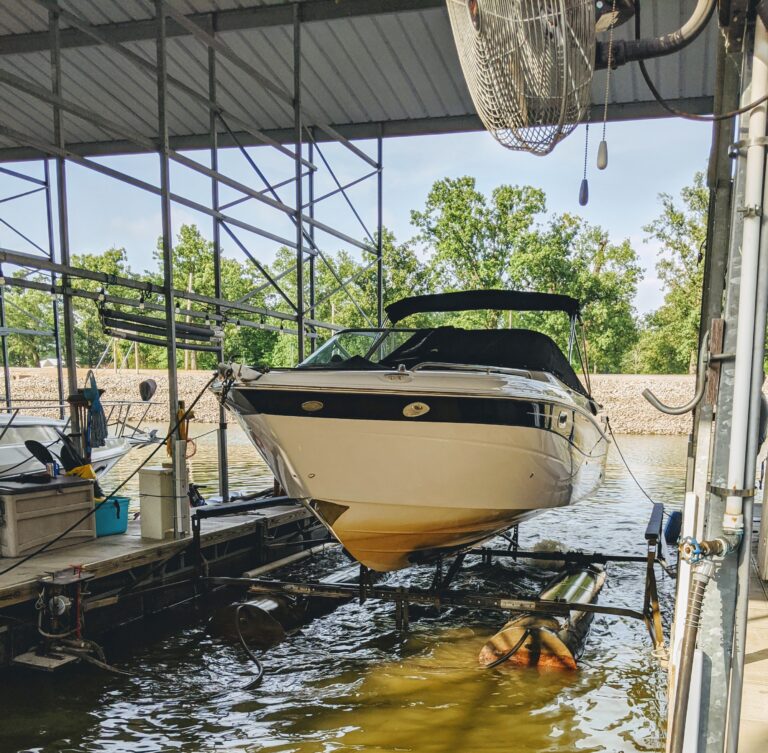 A chance to enjoy summer boating at Woodland Marina located on the Dardenne Slough off of the main channel and across from Enterprise Island. The marina is a few miles from the confluence of the “Mighty Miss” and Illinois Rivers. Woodland Marina is located in Pool 26, mile 222.2.We welcome new boaters and travelers to the St. Charles area!!Woodland Marina was founded over 60 years ago and is a wonderful spot to be on the Mississippi river. We are located in St. Charles, Missouri just 30 minutes from St. Louis. Our marina features covered wet slips, fuel dock, trailer storage, free boat ramp as well as free WiFi to our slip holders. We have covered steel docks ranging in size from 26′ to 65′. We also rent (while supplies last) 8K & 12K hoists as well as PWC hoists. You are more than welcome to bring your own hoist in as well.